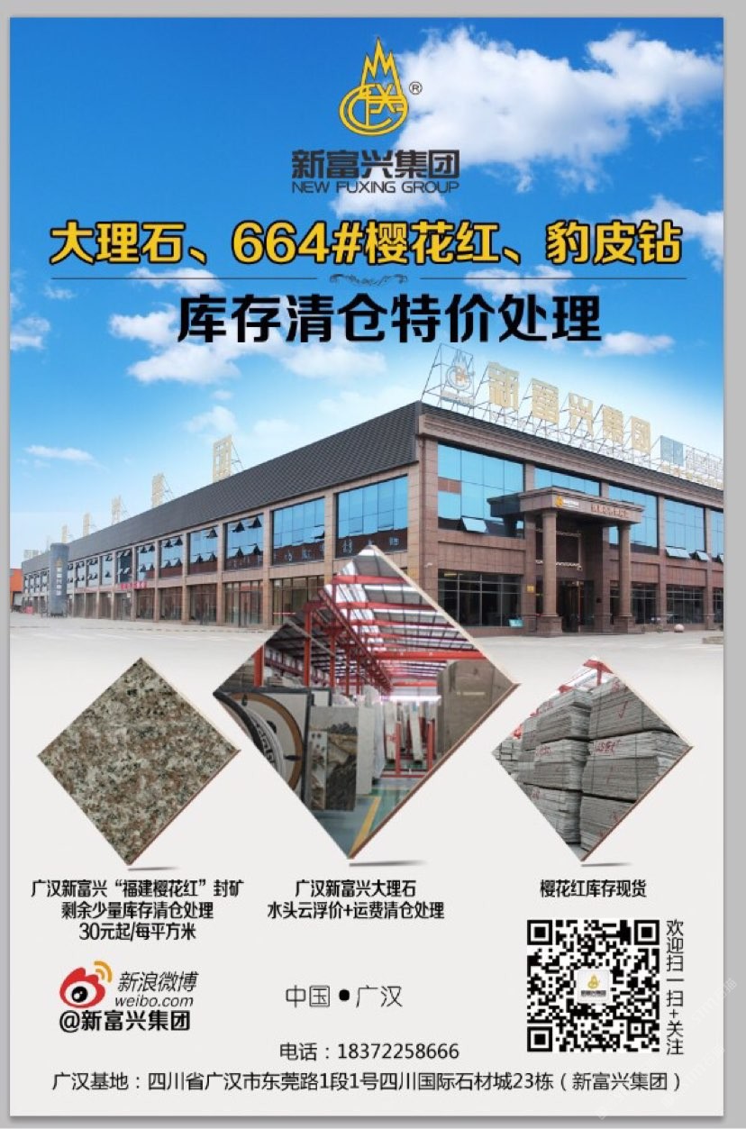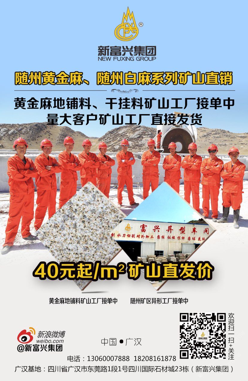 新富興集團(tuán)旗下礦業(yè)板塊國內(nèi)擁有6座大型礦山分別分布在福建、湖南、湖北、新疆等省市盛產(chǎn):664#羅源紅、隨州黃金麻、黃金鉆、卡基諾金、隨州白麻、新疆豹皮鉆、焉耆白麻、湖南芝麻灰等花崗巖;石材板塊分別在四川省以及新疆維吾爾自治區(qū);新疆擁有三家企業(yè)其中四川省范圍內(nèi)擁有3個(gè)大型石材加工基地;成都工廠位于成都沙西線主營:花崗巖工程建設(shè)用石材;2013年成立廣漢富興石業(yè)有限公司在四川廣漢市修建兩家工廠分別位于:四川省廣漢市東莞路一段1號四川國際石材城23棟和29棟;總占地面積55畝。成都工廠負(fù)責(zé)銷售自有礦山的石材產(chǎn)品以及其他品種進(jìn)口、國產(chǎn)花崗巖石材產(chǎn)品大量使用于市政工程、房地產(chǎn)以及大型公共設(shè)施;廣漢工廠除專業(yè)批發(fā)自有礦山:福建、湖北、湖南、四川、新疆等省市自有礦山石材產(chǎn)品外,大理石是新富興集團(tuán)四川地區(qū)石材產(chǎn)業(yè)的主力產(chǎn)品,早在1998年開始新富興集團(tuán)前身企業(yè)之一“成都市金牛區(qū)富興石材加工廠”就已經(jīng)成為西南地區(qū)的進(jìn)口大理石供應(yīng)商之一;現(xiàn)目前集團(tuán)規(guī)模不斷擴(kuò)大并在福建、湖南、湖北、四川、新疆等地區(qū)開發(fā)6座大型礦山并有著的礦山資源優(yōu)勢掌握了產(chǎn)品的源頭以及多年積攢的社會的人脈資源與管理團(tuán)隊(duì)擁有各種先進(jìn)的技術(shù)與設(shè)備;承接國內(nèi)外各種異形大理石、花崗石加工,廠區(qū)擁有先進(jìn)的水刀設(shè)備多臺擁有紅外線橋式切割設(shè)備數(shù)十臺,全自動電腦仿形設(shè)備數(shù)十臺,全自動線條磨邊流水線設(shè)備多臺,異形圓柱設(shè)備多臺,異形車床等眾多異形設(shè)備同時(shí)擁有熟練的技師配合優(yōu)秀的管理者及高效率的服務(wù)團(tuán)隊(duì)使得新富興集團(tuán)四川地區(qū)石材產(chǎn)業(yè)板塊一直處于當(dāng)?shù)匚恢?,為集團(tuán)業(yè)績做出杰出的貢獻(xiàn)。