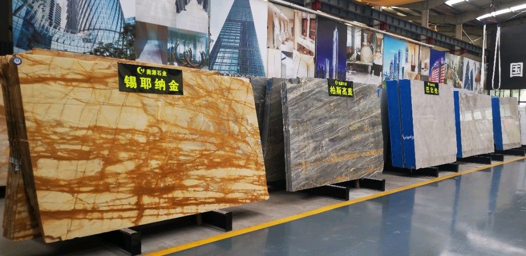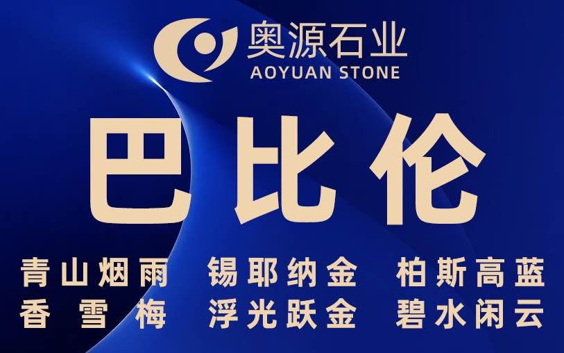 奧源主營品種:巴比倫、青山煙雨、多佛米黃、圣地亞、星河、錫耶納金、香雪梅、貝金米黃、柏斯高藍