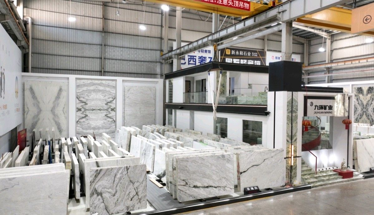 公司創(chuàng)建初期駐點于東升大板市場,隨著市場需求,不斷進行戰(zhàn)略布局,2016年駐點高時大板市場,2017年駐點藝興大板市場,同時期增加澳磊門店,2018年,九環(huán)增加遠(yuǎn)達專場,擁有數(shù)百個架子位,憑借優(yōu)質(zhì)服務(wù)深受客戶認(rèn)可與信賴。2019年,九環(huán)于順盛增加加工點,主要生產(chǎn)“水晶木紋”,年產(chǎn)量達15萬平方米。該年底順勢而上,增加均利廠、新寰宇廠及振南廠三個石材加工廠,并不斷拓寬市場品類,由原先單一的“水晶木紋”,又增拓“印度藍金沙”與“土耳其星月白”兩個大理石品種,年產(chǎn)量接近30萬平方米,公司經(jīng)營得到進一步優(yōu)化。2020年九環(huán)石業(yè)進軍南翼點,新增“卡索灰”及“古堡藍”兩個大理石品種,擁有自己的大型礦山開采權(quán),自主開采銷售,產(chǎn)品種類大幅度增加,業(yè)務(wù)領(lǐng)域進一步拓展。2021年至今,九環(huán)石業(yè)新增澳盛點,新增品種“卡地亞灰”包礦。至此,九環(huán)石業(yè)在“世界石都”水頭戰(zhàn)略版圖囊括了澳盛、新寰宇、東升、遠(yuǎn)達等駐點,具備良好的區(qū)位優(yōu)勢,發(fā)揮著重要的協(xié)同效應(yīng)。\