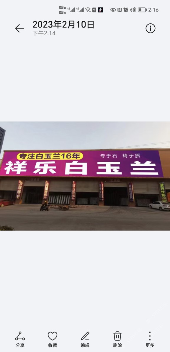 專營(yíng)白玉蘭、閃電,月均到貨量3000噸,大板庫(kù)存量白玉蘭10萬(wàn)平方,閃電3萬(wàn)平方