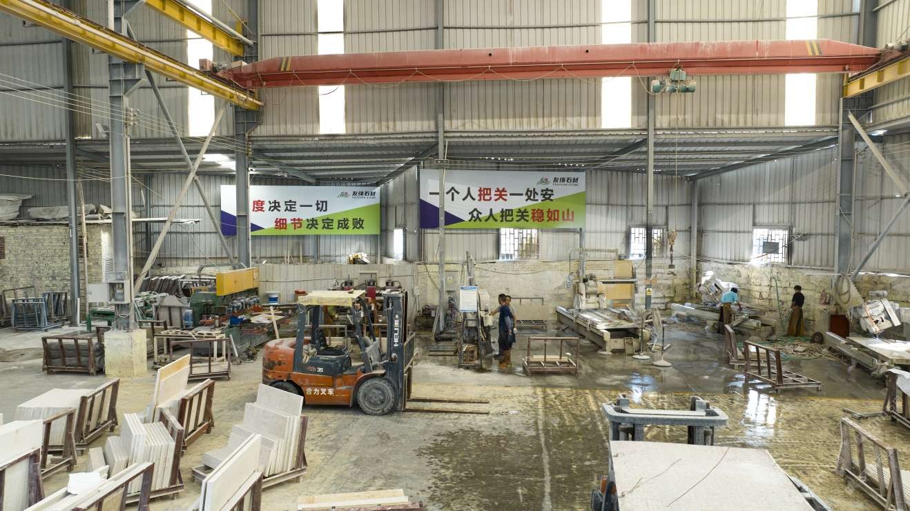 友緣石材精品加工中心、精品倉儲中心位于江蘇省南通市洋口港石材產業(yè)園區(qū),占地面積約28000平方米,生產中心集石材荒料加工,精品大板拋光,工程異形石材加工等一體化生產功能,具有國內外先進加工設備,如鉆石切割機、單邊鋸切割機、繩鋸切割機、全自動板材拋光機、真空烘干流水線設備、紅外線切割機、全自動化線條機、磨邊機、水刀切割機、仿形機等等,具備先進的加工能力和豐富的施工經驗。