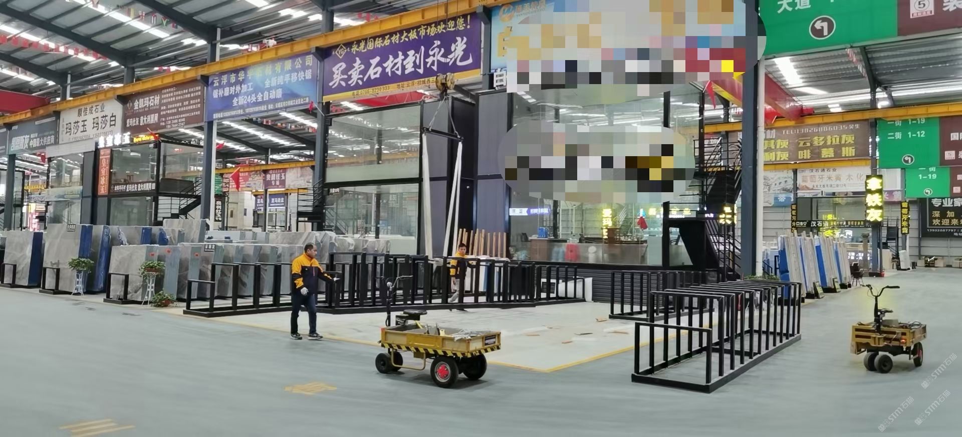 本市場占地面積近三萬平方米,建筑整體根據(jù)石材行業(yè)未來需求專業(yè)設(shè)計,高度18米,柱距9.5米,路寬達(dá)12米,采光通風(fēng)良好。目前進駐商戶接近100戶,集礦山推廣、板材倉儲、產(chǎn)品展示、批發(fā)零售的一站式購銷平臺。商戶產(chǎn)品定位以高端石材為主,包括白石、灰石、米黃、玉石、奢石等上百種產(chǎn)品集聚于此,真正實現(xiàn)行業(yè)資源共享、商客互動、互惠互利的雙贏模式。另外,本市場提供獨棟辦公樓、餐廳、大型停車場、專業(yè)吊裝服務(wù)、安保清潔等配套設(shè)施,減少商戶軟性運營成本,助您點石成金!