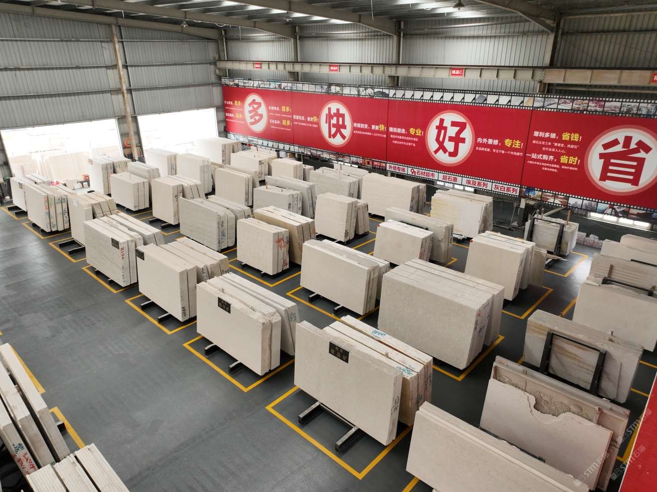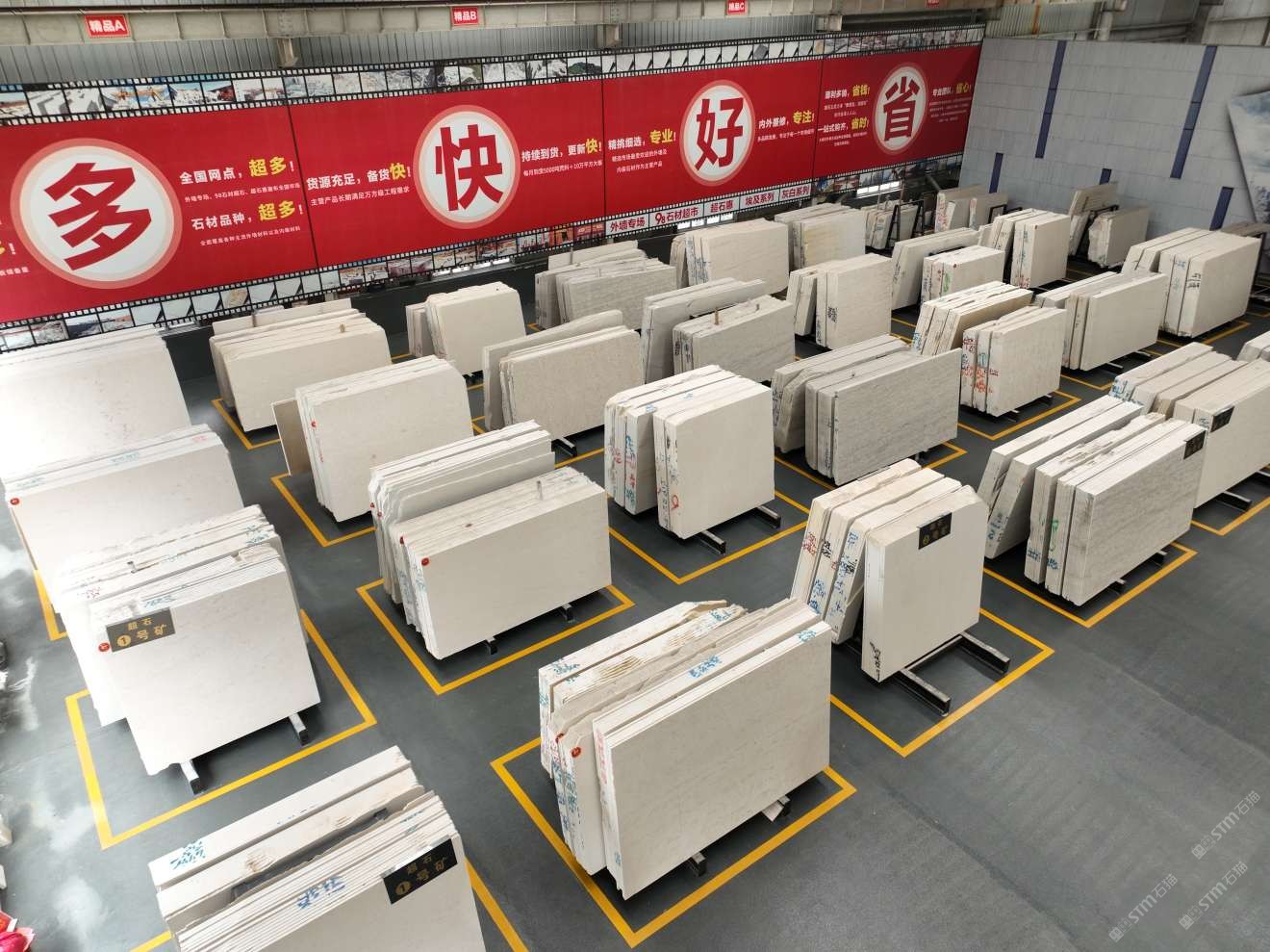 其中超石上海工廠,占地45000平方,擁有8臺(tái)大拉鋸、3臺(tái)進(jìn)口磨機(jī),工人150多名,年產(chǎn)量150萬(wàn)平米。