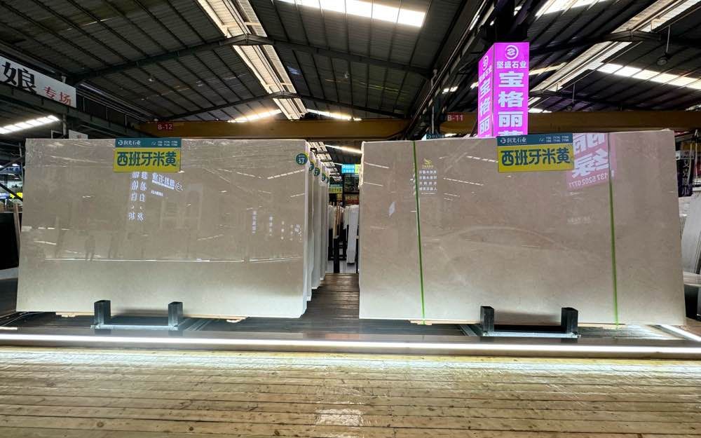 潤光石業(yè)長期大量供應(yīng)西班牙米黃,荒料5千噸,現(xiàn)貨1萬平以上,東升石材城1號通道B19區(qū),歡迎您的到來,18671467788。