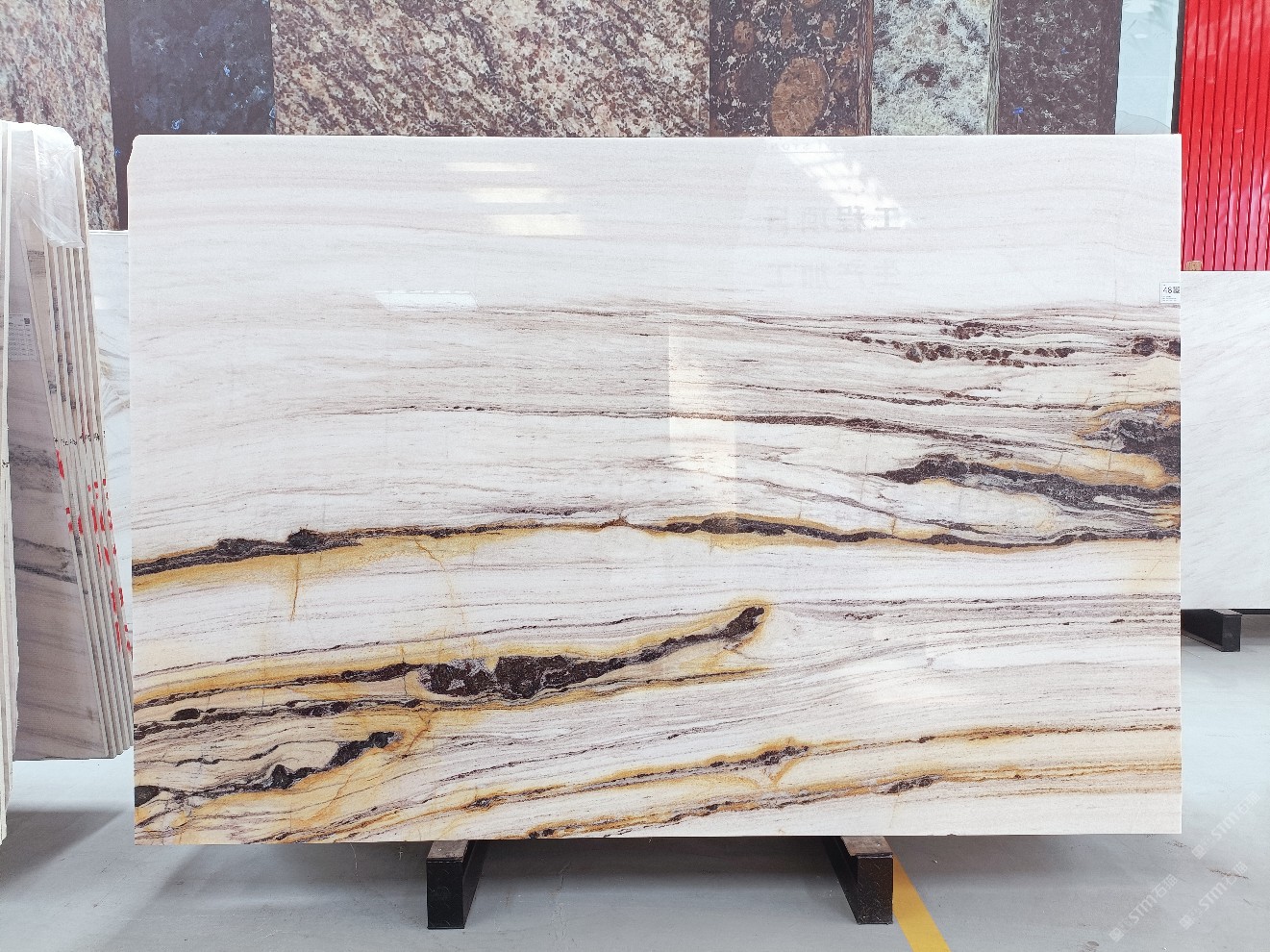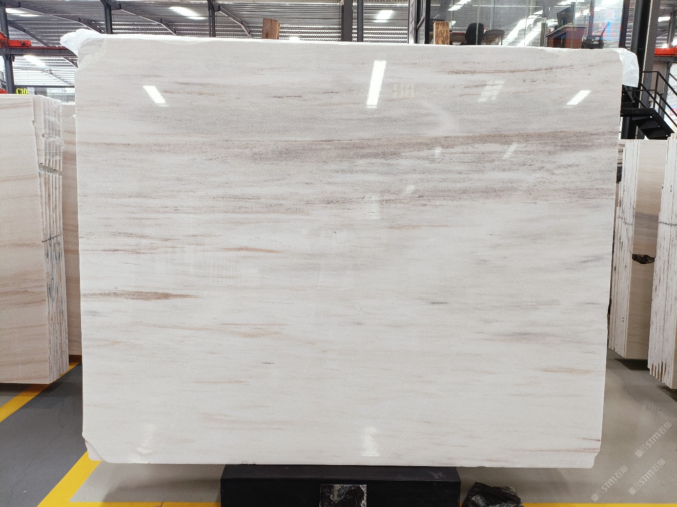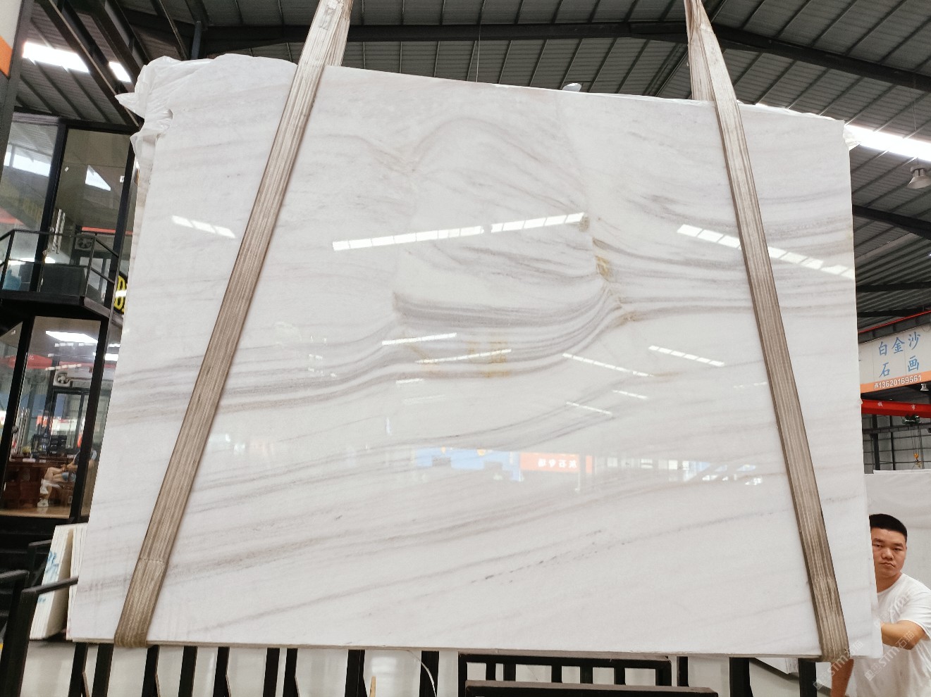 云浮站石材公司開發(fā)的歐亞白獨立礦山,專屬道路,礦口面積約 725 畝,證件齊全。今年礦口開采出直紋,亂紋優(yōu)質(zhì)大板材料,礦山采用單面墻平臺開采方式,10臺繩鋸、5臺鏟車、5臺勾機(jī)、一臺 30 噸叉車,共有職工40人,已有兩個開采平臺。礦山已開采多年,道路、設(shè)施都已成熟,現(xiàn)產(chǎn)能穩(wěn)定增長。品質(zhì)非常穩(wěn)定,一石兩面分別可以產(chǎn)出直紋和亂紋兩種紋路,材質(zhì)為細(xì)膩的玉質(zhì)品體。