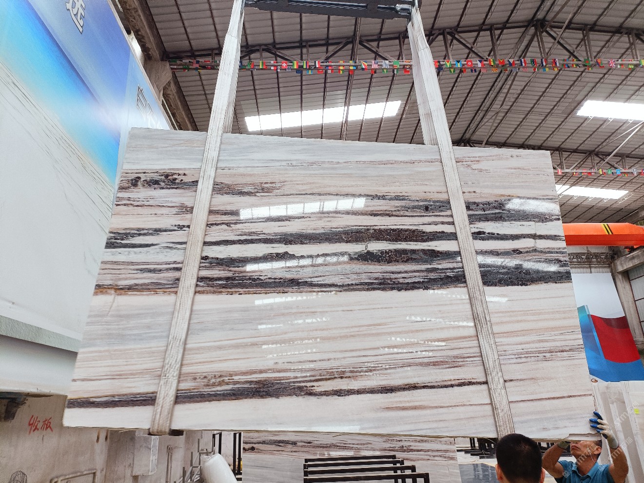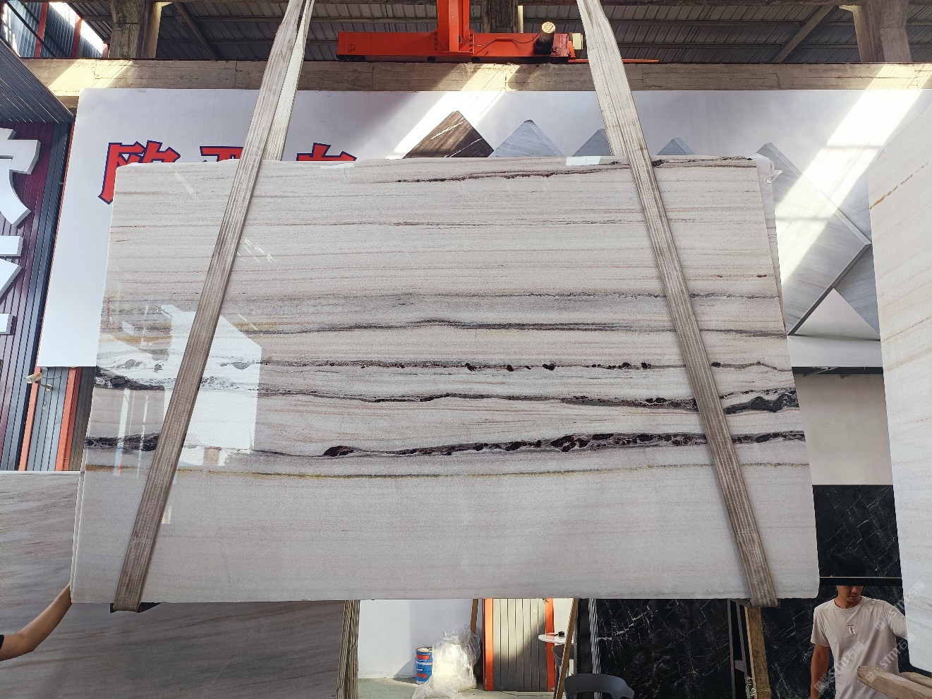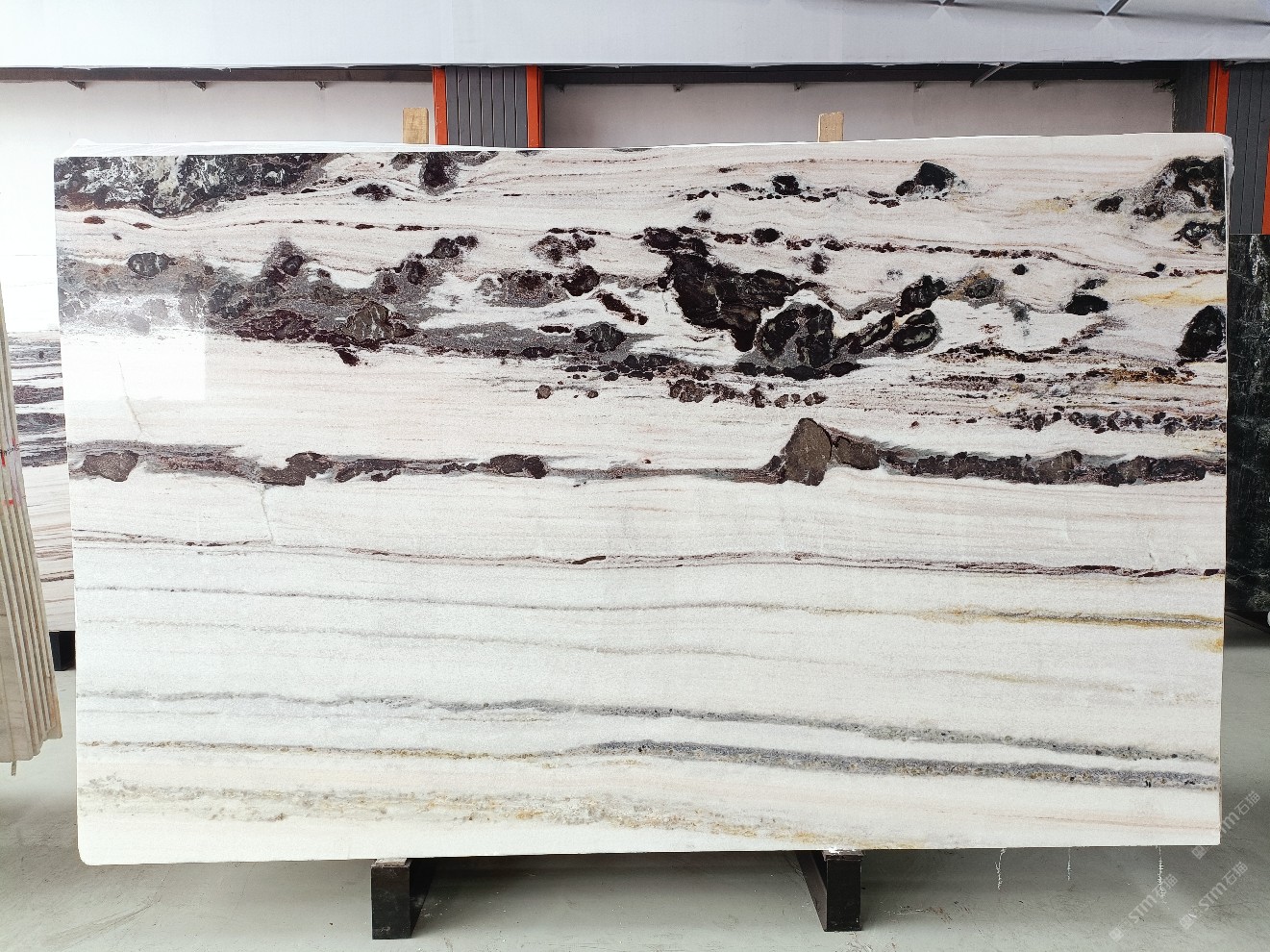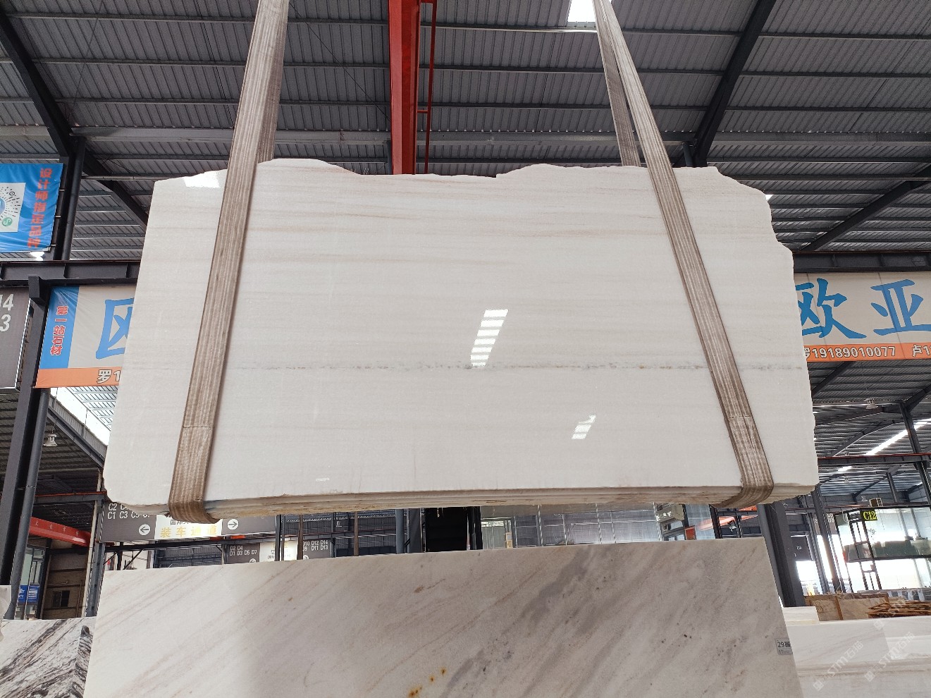 云浮站石材公司開發(fā)的歐亞白獨立礦山,專屬道路,礦口面積約 725 畝,證件齊全。今年礦口開采出直紋,亂紋優(yōu)質(zhì)大板材料,礦山采用單面墻平臺開采方式,10臺繩鋸、5臺鏟車、5臺勾機(jī)、一臺 30 噸叉車,共有職工40人,已有兩個開采平臺。礦山已開采多年,道路、設(shè)施都已成熟,現(xiàn)產(chǎn)能穩(wěn)定增長。品質(zhì)非常穩(wěn)定,一石兩面分別可以產(chǎn)出直紋和亂紋兩種紋路,材質(zhì)為細(xì)膩的玉質(zhì)品體。