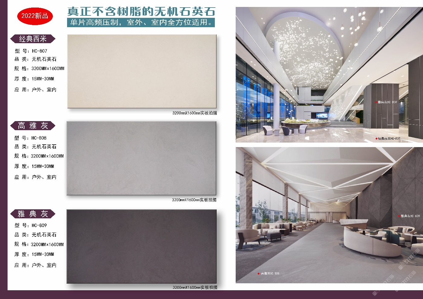 專業(yè)研發(fā)生產銷售:無機石英石裝飾板材產品性能具有高硬度、耐磨損、耐高溫、耐侯性好、高抗折強度、低吸水率、抗污易潔、健康無輻射、不含樹脂、可燒火燒面、可應用到室內外等優(yōu)秀特點。歡迎各位了解洽談合作,電話微信同步:18507665889梁