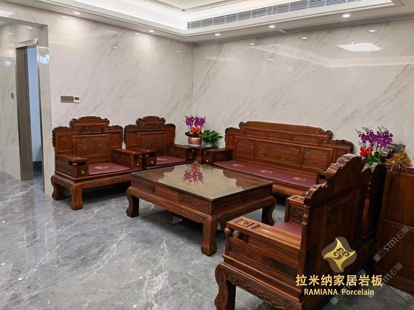 拉米納家居巖板(RAMIANA Porcelain),硬度堪比石英石,亮度高,抗污、耐熱、防刮、耐用、易清潔。