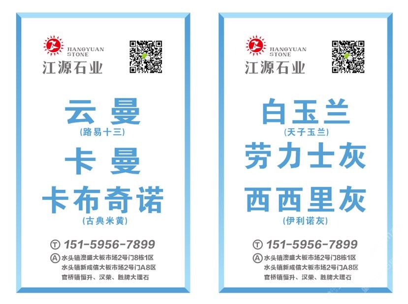 銷售點(diǎn):澳盛大板市場(chǎng)2號(hào)門8棟1-4區(qū),新成信2號(hào)門A8-10區(qū),官橋恒升、勝牌大理石廠