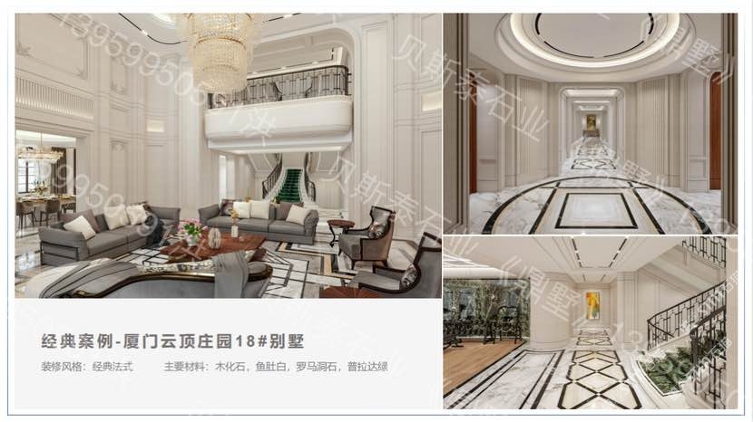 經(jīng)營范圍:主營品種,老礦莎安娜,魚肚白,雪花白,自有工廠,200多號精英團隊,企業(yè)2006成立至今,累計上千套別墅大宅石材銷售,加工生產(chǎn),整案落地經(jīng)驗。全國別墅大宅石材整案落地合作,品牌區(qū)域授權(quán)加盟合作。傳世大宅鼎墅造!