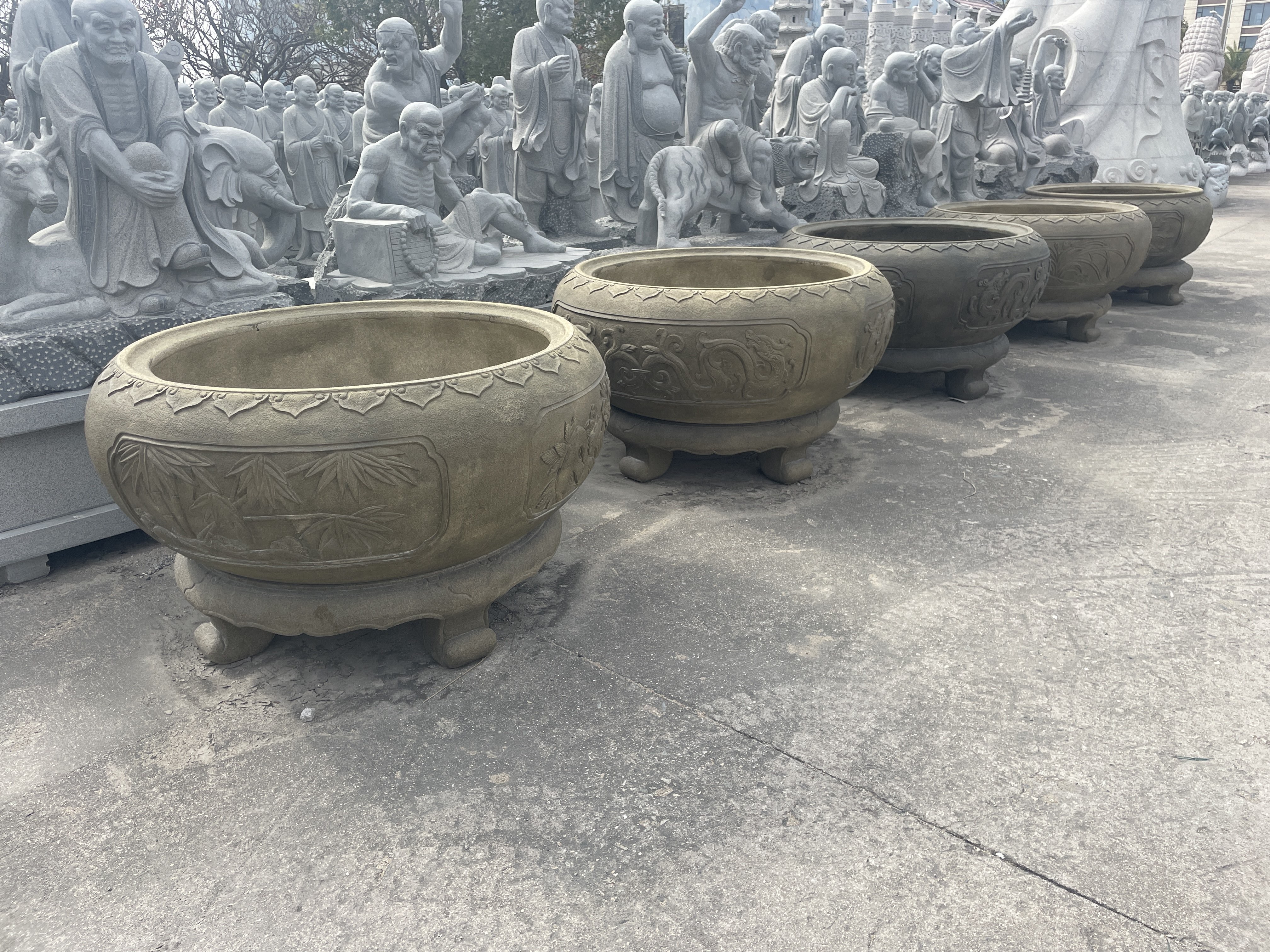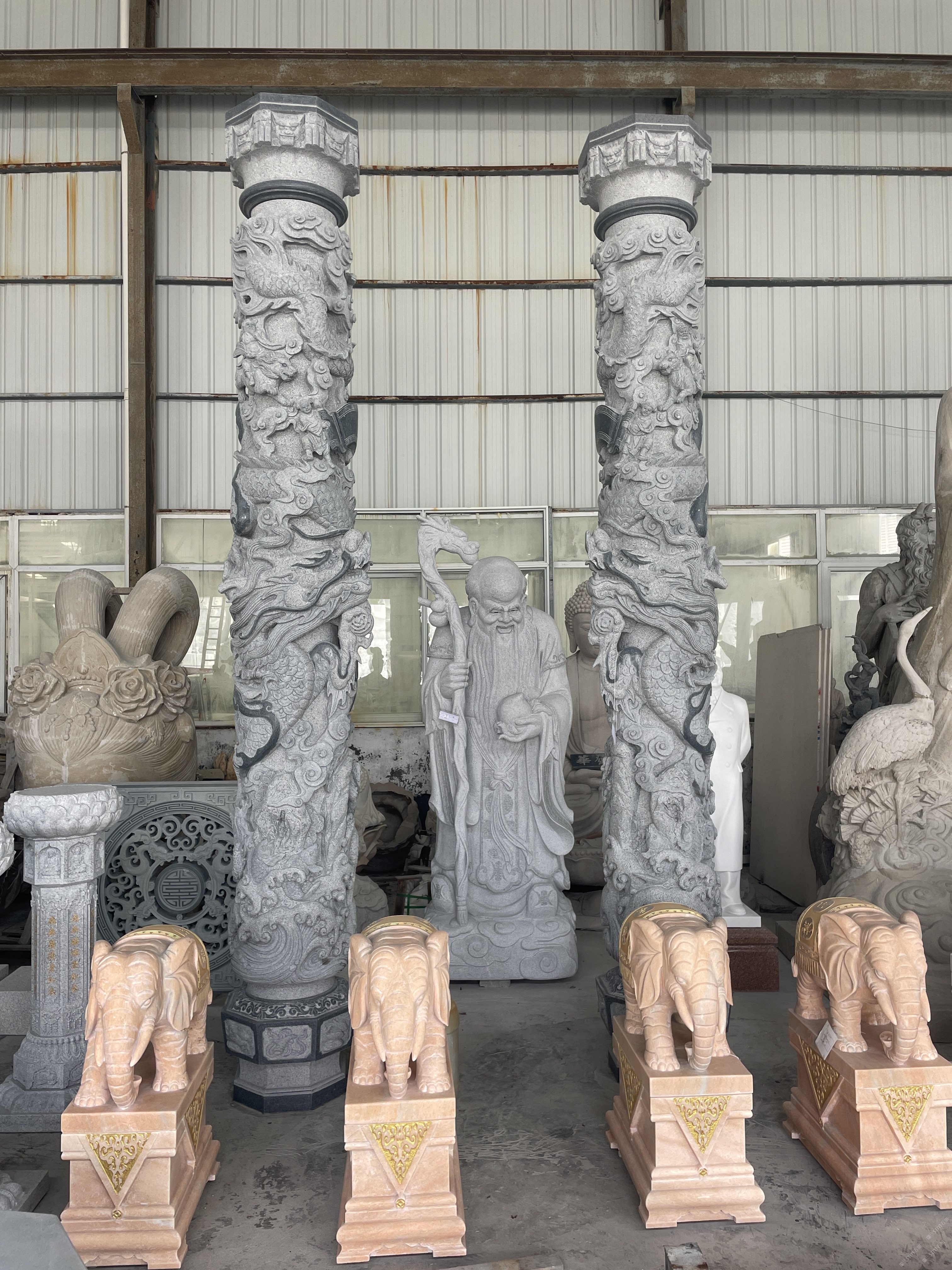 ? ? ? 生產(chǎn)加工產(chǎn)品主要包括大型雕塑、古今名人雕塑、園林配套雕塑、寺廟雕刻、動(dòng)物雕塑、奇石(鐘乳石)、宗教大佛雕塑、龍柱、文化柱、石塔、經(jīng)塔、漏窗、山門(mén)牌樓、噴泉、庭院燈籠等上千個(gè)石雕品種。石雕技藝?yán)w巧、精細(xì),具有賞心悅目的藝術(shù)效果。近年來(lái)公司致力于城市景觀工程配套服務(wù),為市政廣場(chǎng)、城市綠化廣場(chǎng)、公園、住宅小區(qū)等場(chǎng)所提供大量具有相當(dāng)藝術(shù)含量的雕塑作品,設(shè)計(jì)、生產(chǎn)、安裝一站式服務(wù)。