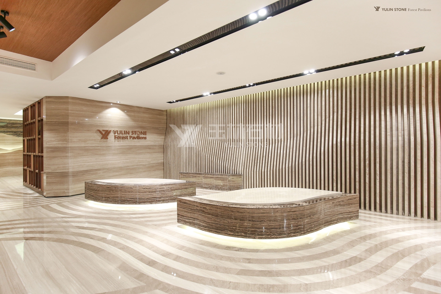 發(fā)布信息: 墻面的可塑性線條與地面用白木紋和灰木紋做出的水波花紋與葉子造型的椅子相呼應(yīng),整體低調(diào) 而不失奢華。這塊白色石材電視背景墻,是意大利產(chǎn)的 一款奢石,名叫"魚肚白”,3萬元/m2,經(jīng)對拼成圖案完成,也是高檔別墅、酒店目前比較受到歡迎的產(chǎn)品。通過對比,其效果和質(zhì)量,我們的木紋石并不比它遜色。
