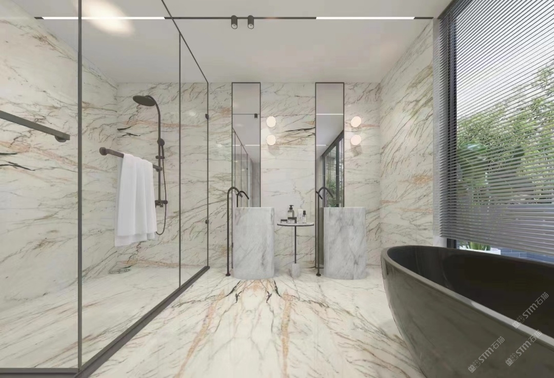 東方魚肚白墻面,地面效果圖