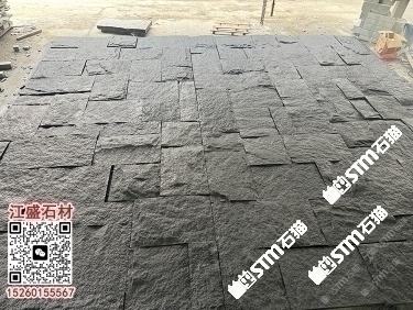 老礦G654芝麻黑蘑菇石文化石劈裂石流水幕墻馬蹄石
