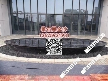 印度黑金沙石材園林水池水景工程造景石材戶外水景工程