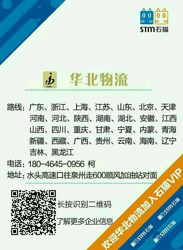發(fā)布信息: 福建華北物流?貨運(yùn)站: 承接福建--全國(guó)各地貨運(yùn),整車,零擔(dān),我們的專線浙江,海南、合肥、北京、重慶、廣西、貴州、武漢、鄭州、江蘇、山東、上海、西安、廣東、成都、天津、云南、杭州、河北、長(zhǎng)沙、東北三省整車零擔(dān)歡迎來(lái)電洽談!謝謝!真誠(chéng)合作、共創(chuàng)雙贏 18046450956微信15905961654微信13115957597微信小柯
