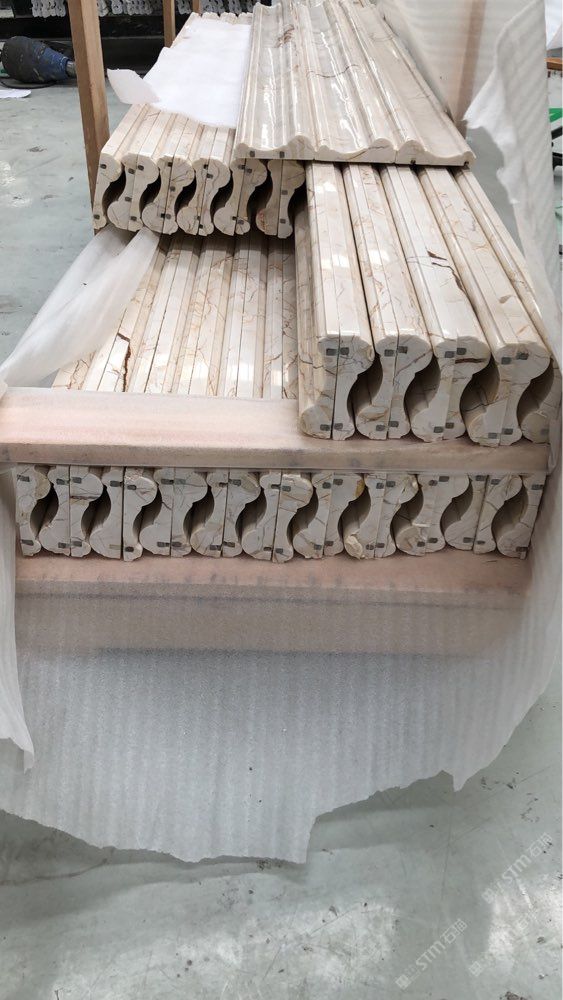 大理石線(xiàn)條是一種裝飾造型藝術(shù),所以現(xiàn)行標(biāo)準(zhǔn)中并不給出眾多形狀,大略分為歐式線(xiàn)條和現(xiàn)代風(fēng)格線(xiàn)條。裝飾中經(jīng)常用一些異型石材花線(xiàn)條來(lái)作為門(mén)框,窗框,天花線(xiàn),屋檐,建筑物轉(zhuǎn)角,腰線(xiàn),踢腳線(xiàn)等的邊緣,以達(dá)到使用美觀(guān)的目的。