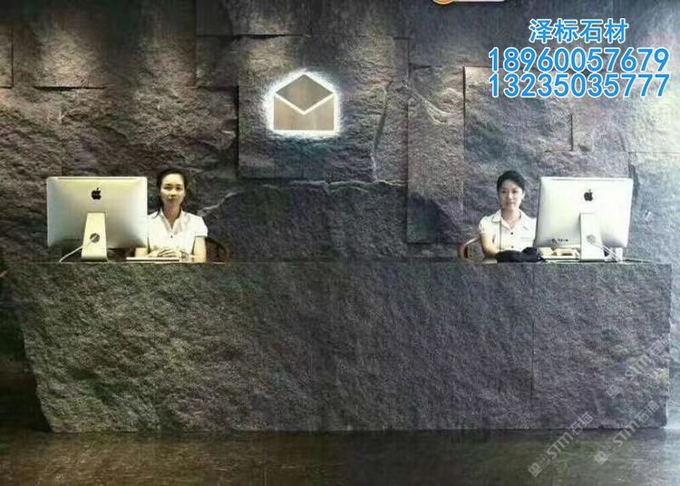 芝麻黑石材自然面外墻干掛劈裂石文化石電視背景墻定制