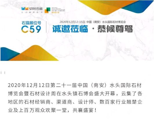 2020水頭石博會(huì),石貓與你發(fā)現(xiàn)石材藝術(shù)展位!