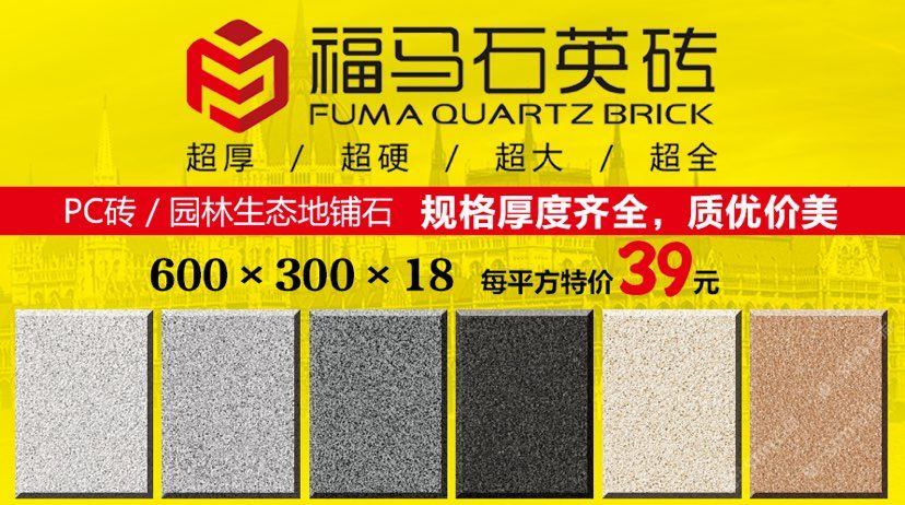 發(fā)布信息: 福馬石英磚? 品質(zhì)承諾:無色差、無裂痕、不褪色、不變形、不吸水、不膨脹。 適合用于室內(nèi)外,景觀,庭院、圍墻,地鋪,干掛外墻。歡迎新老客戶來選購,品種多,規(guī)格全