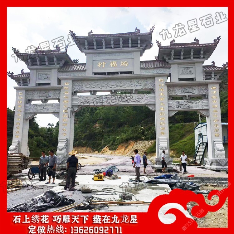 發(fā)布信息: 農(nóng)村村口牌坊 石牌坊生產(chǎn)廠家——九龍星石業(yè)。 農(nóng)村村口牌坊制作內(nèi)容豐富,雕刻精美,每一座石牌坊都瑰麗華美,都是經(jīng)過石牌坊雕刻廠家精雕細(xì)刻加工而成的。 從農(nóng)村村口牌坊設(shè)計(jì)來看,規(guī)格主要可以分為單門牌坊、三門牌坊、五門牌坊等,在樣式上可以考慮沖天式牌坊或者不出頭式牌坊。此外石牌坊本身的雕刻圖案選擇也非常多,根據(jù)當(dāng)?shù)氐娘L(fēng)土人情以及文化特色等,在牌坊的設(shè)計(jì)上都會(huì)有很大的不同,考慮村莊石牌坊多少錢,也會(huì)考慮到牌坊本身的工藝設(shè)計(jì)以及雕刻的精細(xì)度情況,做工越是精致牌坊的價(jià)格越高,做工要是普通的話相對(duì)來說也就不需要那么多錢。