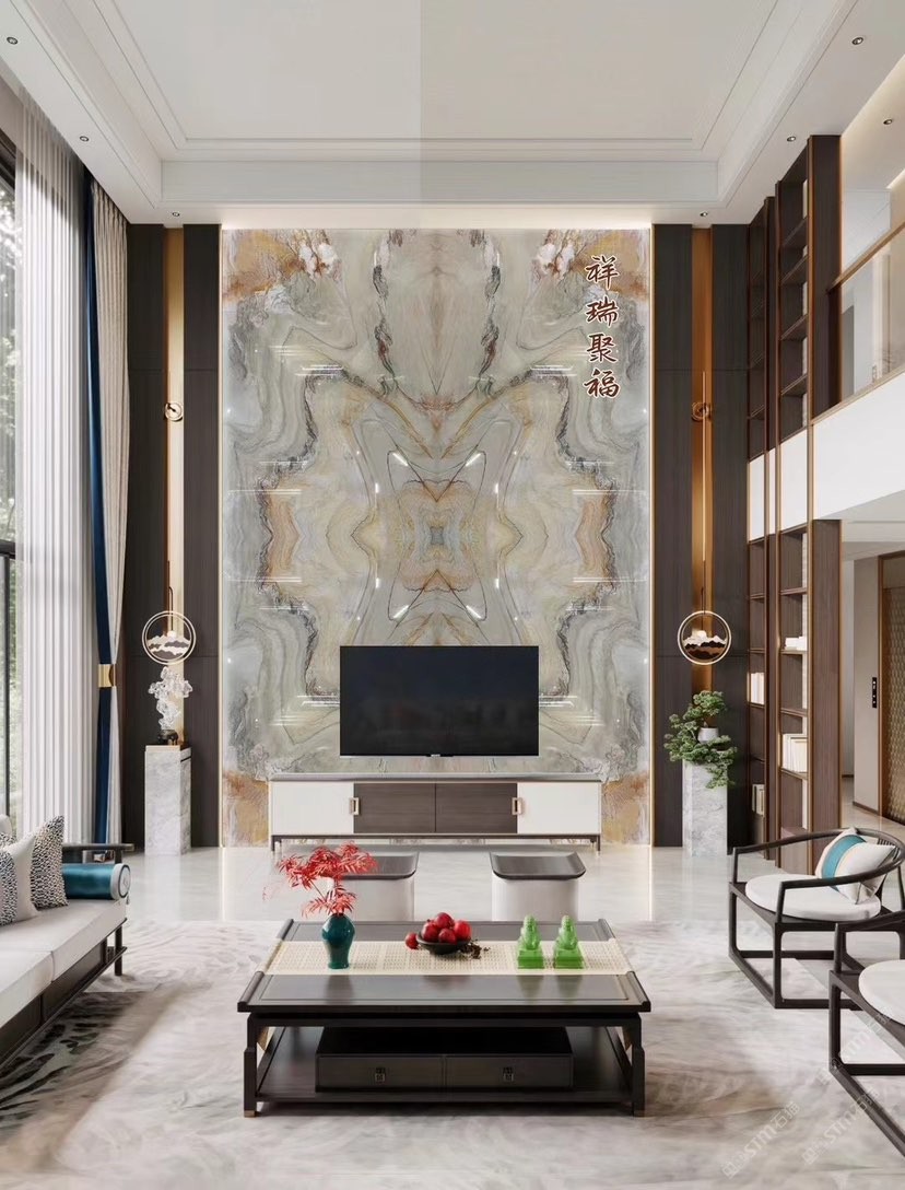 巴西奢石背景墻|彩虹印象