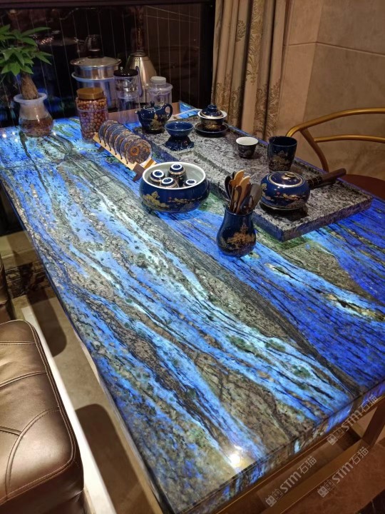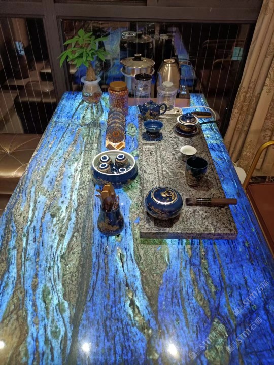 夢幻藍寶 巴西純天然透光桌面