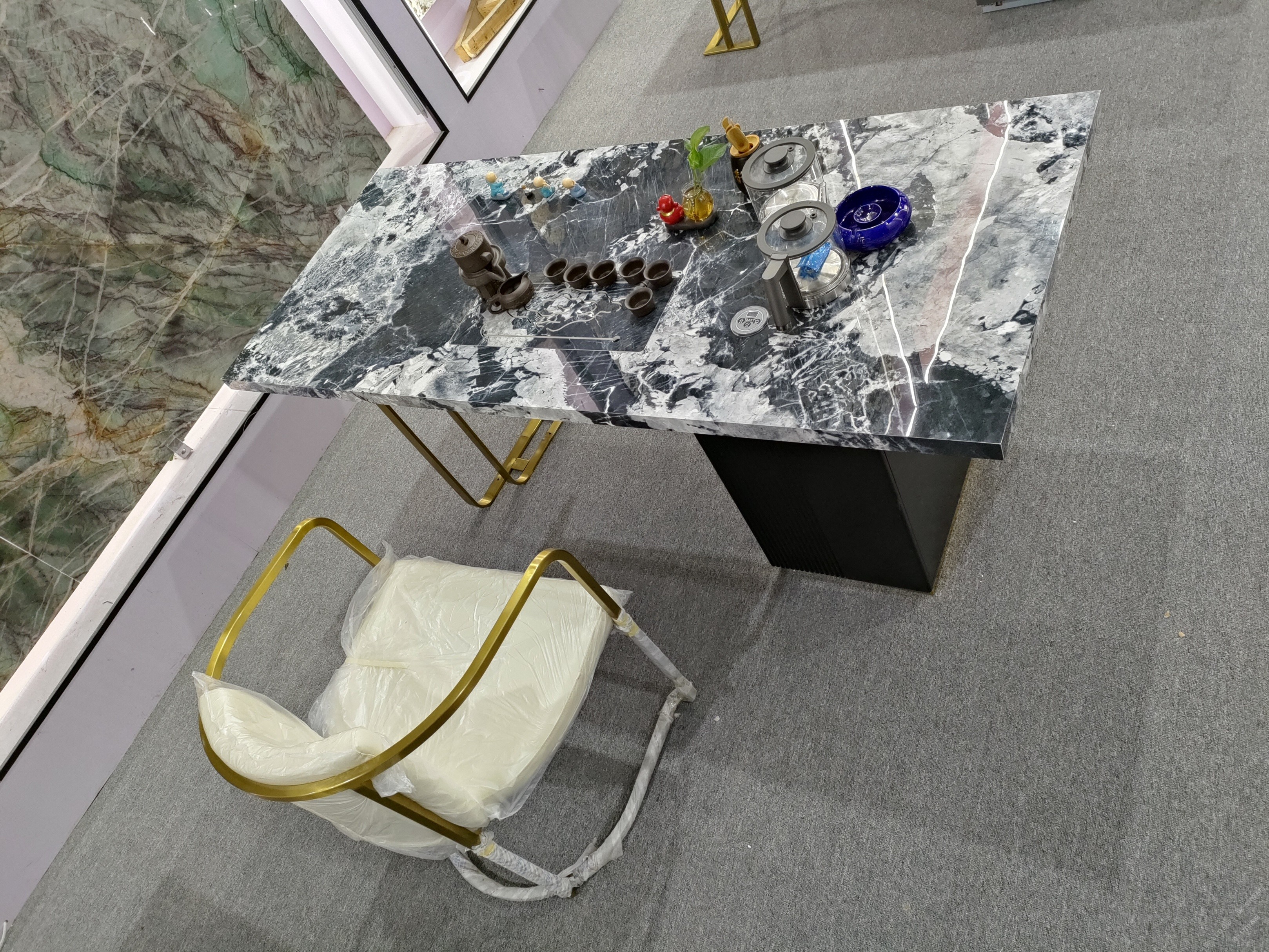 古薩輕奢巖板簡約辦公高檔茶臺(tái)