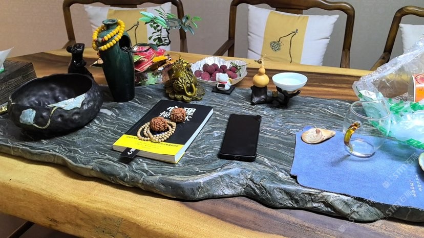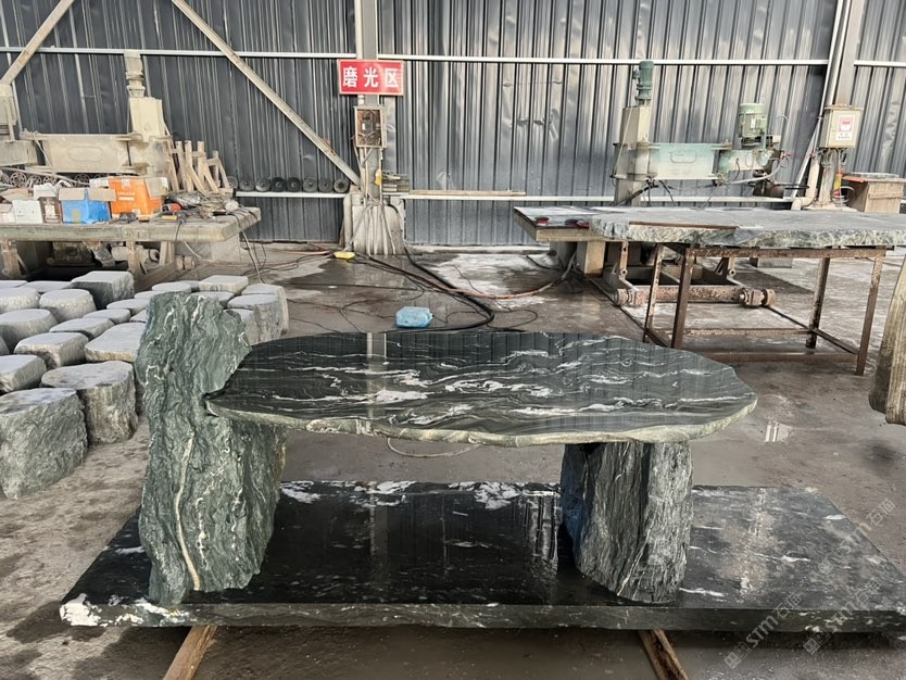 九龍玉石桌椅,地鋪碎拼,茶臺