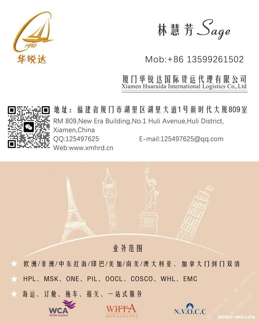 發(fā)布信息: 廈門華銳達(dá)國際物流專業(yè)石材國際運(yùn)輸服務(wù),全面覆蓋歐洲、非洲、中東、印巴(印度/巴基斯坦)、南美、澳大利亞及中亞五國等全球主要市場,確保您的石材安全、高效抵達(dá)目的地 歡迎詢價(jià)13599261502