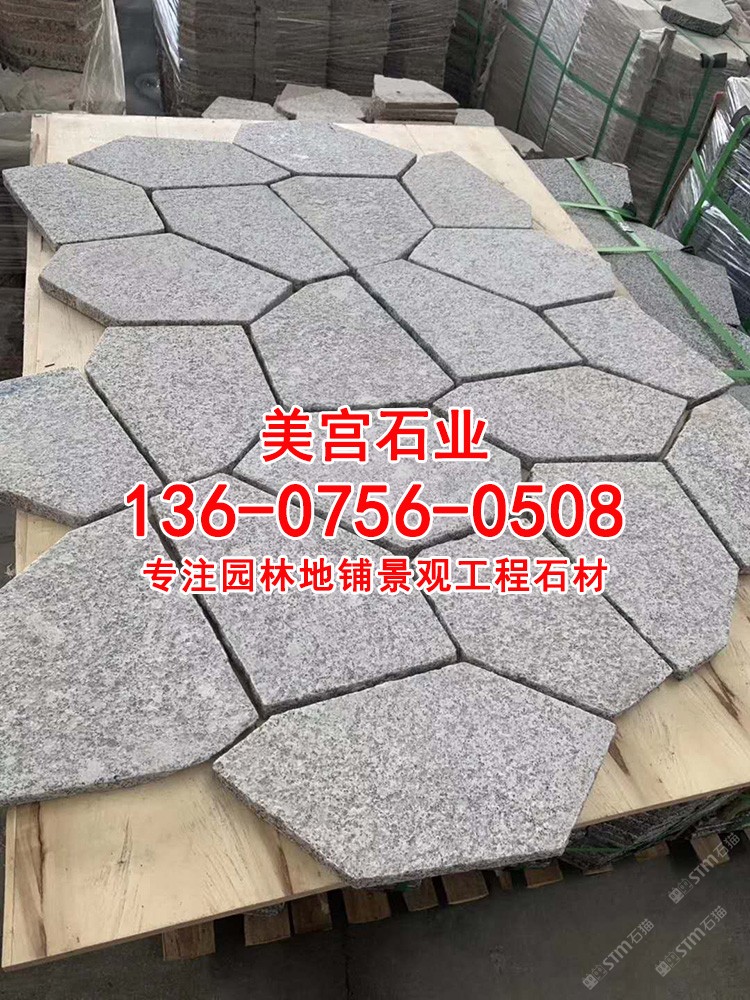 芝麻黑654石材冰裂紋亂拼碎拼石園林地鋪黃銹石蝦紅
