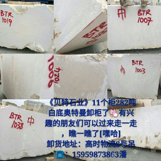發(fā)布信息: 新到白底奧特曼荒料,卸于高時(shí)物流8號(hào)吊,歡迎各位領(lǐng)導(dǎo)前來(lái)圍觀選購(gòu)!?:15959873863潘