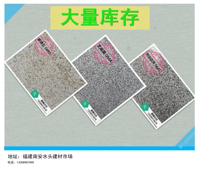 發(fā)布信息: 【鵬騰石材】 大量現(xiàn)貨:G654芝麻黑、G655芝麻灰、喬治亞灰,毛板及荒料。 大量新板不斷上新,承接各種工程訂單,價(jià)格優(yōu)惠,品質(zhì)保證 24小時(shí)熱線:13306967840 地址:福建南安水頭建材市場(chǎng)