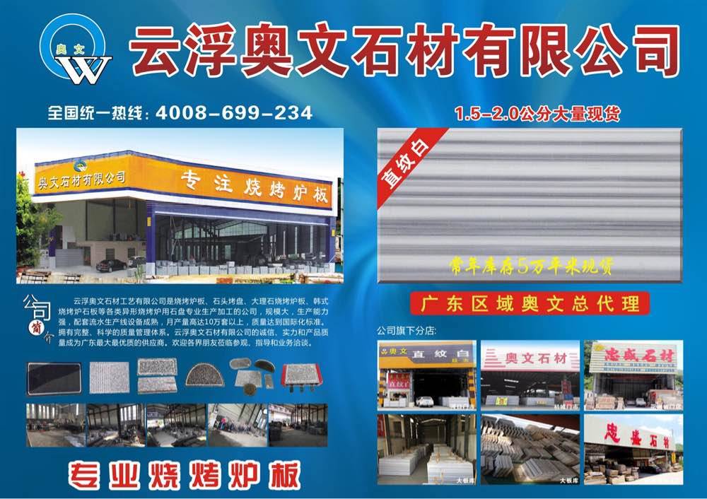 云浮奧文石材有限公司 聯(lián)系人:葉先生    139****1048 查看 4008699234 查看 主營(yíng)范圍: 大板批發(fā)、 企業(yè)地址:廣東云浮廣東省云浮市云城區(qū)河口夾河路口