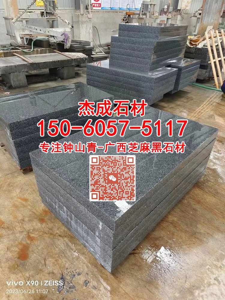 發(fā)布信息: 鐘山青-廣西芝麻黑-廣西654-鐘山綠-金點(diǎn)綠-新礦芝麻黑-便宜芝麻黑654石材 杰成石材工廠位于廣西省鐘山縣 林總15060575117 (微信同號(hào)),廠家批發(fā),同等品質(zhì)價(jià)格更有優(yōu)勢(shì),歡迎新老客戶溝通洽談!本廠專注于廣西芝麻黑,廣西芝麻黑荔枝面、廣西芝麻黑火燒面、廣西芝麻黑磨光面、光面芝麻黑、燒面芝麻黑、荔枝面芝麻黑、廣西G654、廣西654、新礦芝麻黑、新礦654、廣西芝麻黑石材、鐘山青、金點(diǎn)綠、廣西g654石材、鐘山青花崗巖、廣西芝麻黑廠家、廣西654價(jià)格、廣西芝麻黑工廠、廣西芝麻黑花崗巖、廣西黑石材、廣西深灰麻、新芝麻黑、新654、新G654、新品種芝麻黑、新礦山芝麻黑654、新654芝麻黑、廣西童子黑石材、廣西黑花崗巖、光面芝麻黑石材、燒面芝麻黑石材、荔枝面芝麻黑石材、機(jī)切面芝麻黑石材、自然面芝麻黑花崗巖、菠蘿面芝麻黑石材,廠礦一體;加工方式有規(guī)格板,臺(tái)階板,工程板,路沿石,墓碑,地磚,盲道,光板,火燒板,荔枝面,刴斧面,蘑菇面,自然面,樹圍花圍、坡道磚、水溝蓋板等