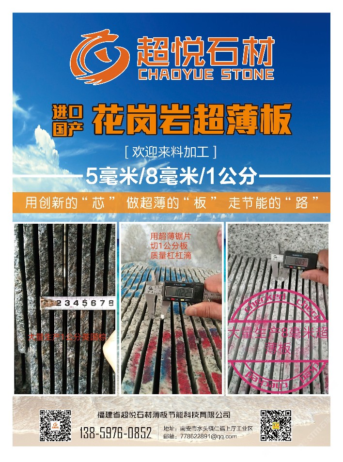 發(fā)布信息: 握手]我工廠采用超薄3.0鋸片大切專業(yè)對外來料精加工進(jìn)口國產(chǎn)花崗巖。高出材率!為你降低成本,提升利潤空間! 財(cái)富密碼13859760852