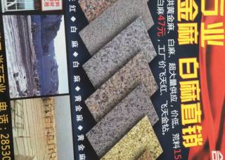 阿拉善左旗鑫良礦業(yè)有限責(zé)任公司主營產(chǎn)品:金色玫瑰,阿拉善黃,中國黑,芝麻灰,阿拉善紅,金色玫瑰1,金色玫瑰(深底),盤古金,盤古金1,茉莉金麻,新茉莉金麻,新茉莉金麻1,茉莉金麻1,漠玉黃,漠玉黃1,漠玉黃2,莫玉煌荔枝板,莫玉煌光板,皇室金麻,橙色玫瑰,新卡麥,諾爾紅,阿拉善金,阿拉善棕,沙漠金(諾爾玫瑰),沙漠棕,路易斯金,新卡麥1,白麻企業(yè)地址:內(nèi)蒙古阿拉善盟阿拉善左旗吉蘭泰鎮(zhèn)