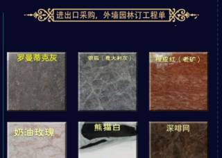 豪展大理石(中駿石業(yè))主營產(chǎn)品:藍(lán)金沙木紋(直紋),意大利藍(lán)金沙1,意大利藍(lán)金沙3,愛馬仕灰5,愛馬仕灰(土耳其礦),意大利銀灰(愛馬仕灰),喬治亞灰3,喬治亞灰(新礦),意大利灰(幻影灰),意大利灰11企業(yè)地址:福建南安蘇內(nèi)工業(yè)區(qū)