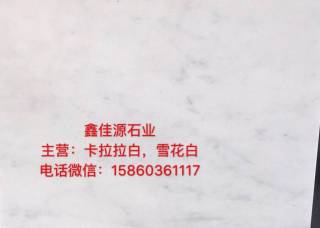鑫佳源石業(yè)主營(yíng)產(chǎn)品:卡拉拉白,雪花白,卡拉拉白2,卡拉拉白1,意大利卡拉拉白,雪花白2,雪花白3,小雪花白(細(xì)紋雪花白),細(xì)紋雪花白,意大利雪花白企業(yè)地址:福建泉州南安市濱海大道中閩地磅威利石材加工廠