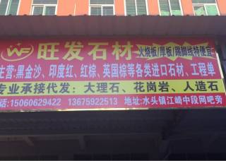 旺發(fā)石材主營(yíng)產(chǎn)品:麥成金絲(人造石),黑金沙,黑金沙(中花),古典米黃,紫羅紅,金鉆,新莎安娜,G617(新礦),新安溪紅,G623,銀珠,銀珠3,新654,粗花654(荔枝面),新654(ZZ礦),浪花紅,新中國(guó)黑,水景企業(yè)地址:福建南安水頭海聯(lián)廣場(chǎng)附近