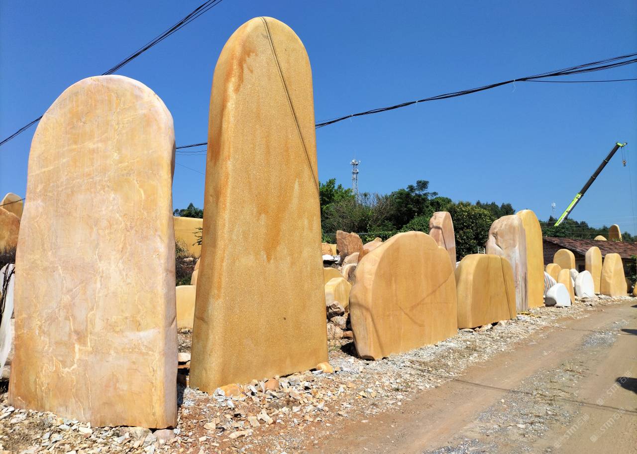 描述:黃蠟石屬景觀石、園林石的一種,是鐫刻詩文、題寫招牌、刻字景觀石,用作地產(chǎn)招牌石、廣場題名石、路牌石、學(xué)校勵(lì)志石、駁岸園林石等。其造型可分臥石和縱石兩大類,顏色天然,加工工藝為打磨和刻字。
